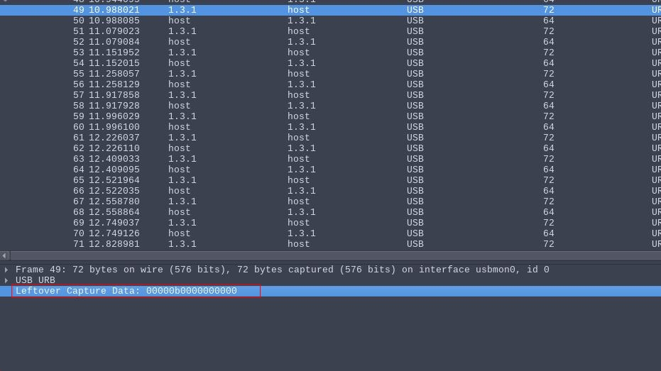 Un capture réseau nous est soumise et on peut voir à l'intérieur uniquement du protocole USB.