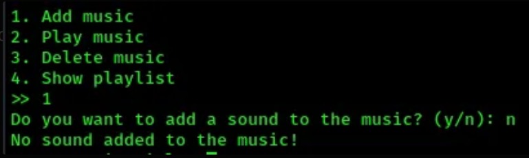 Do you want to add a sound to the music? (y/n):; choisissonsnpour voir :