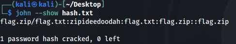 Une fois le fichier ZIP téléchargé, on se rend compte que l'on ne peut pas extraire l'archive car elle est protégée par un mot de passe, mais ce n'est pas forcément un problème si le mot de passe est faible car JohnTheRipper permet très facilement de bruteforcer le mot de passe.