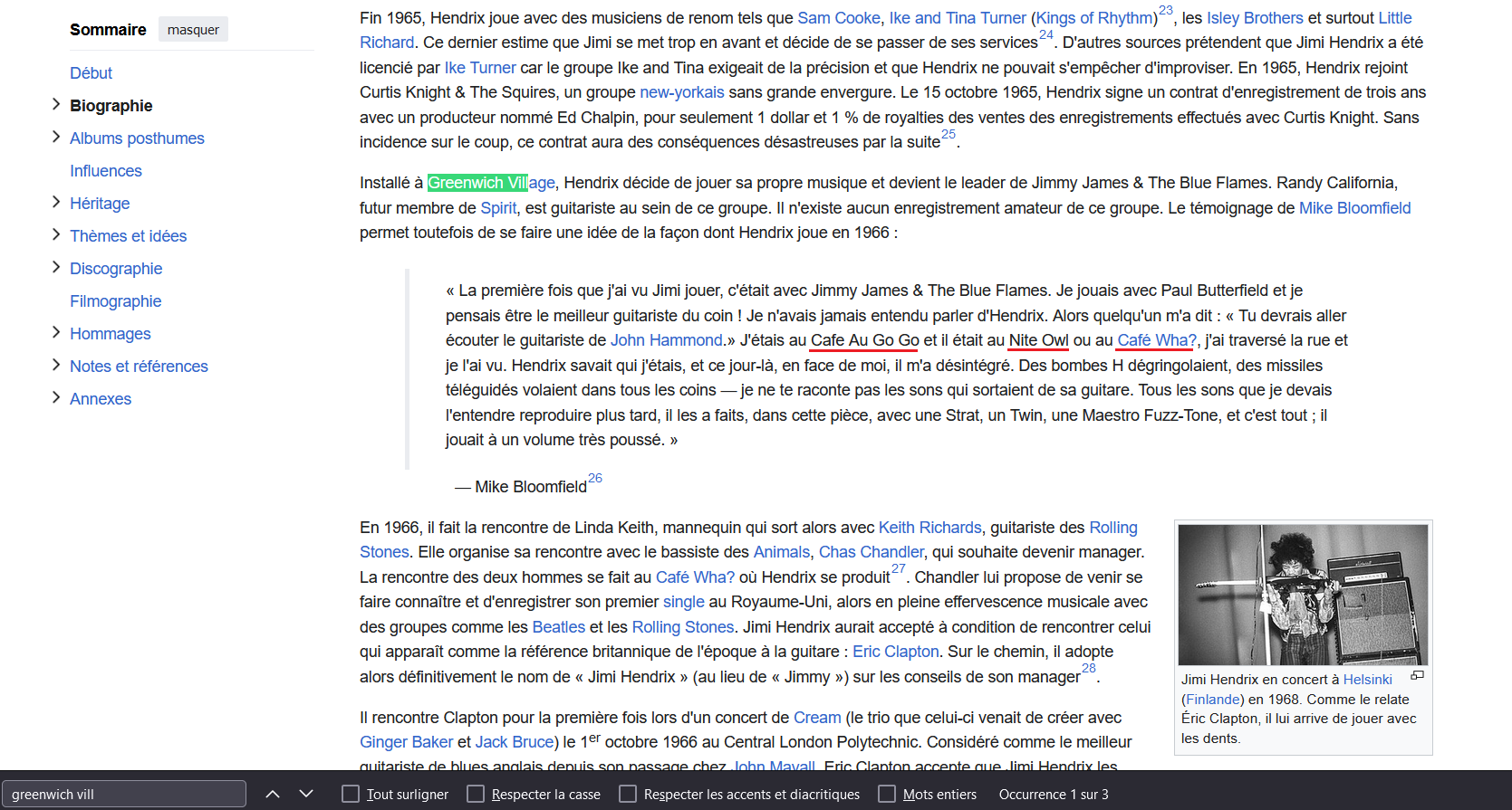 Jimi Hendrix serait donc à l'origine de ce son, maintenant, nous recherchons un endroit qu'il fréquentait à Greenwich Village, et Wikipédia nous donne une fois encore la réponse qu'il nous faut, sur la page officielle de Jimi Hendrix:
